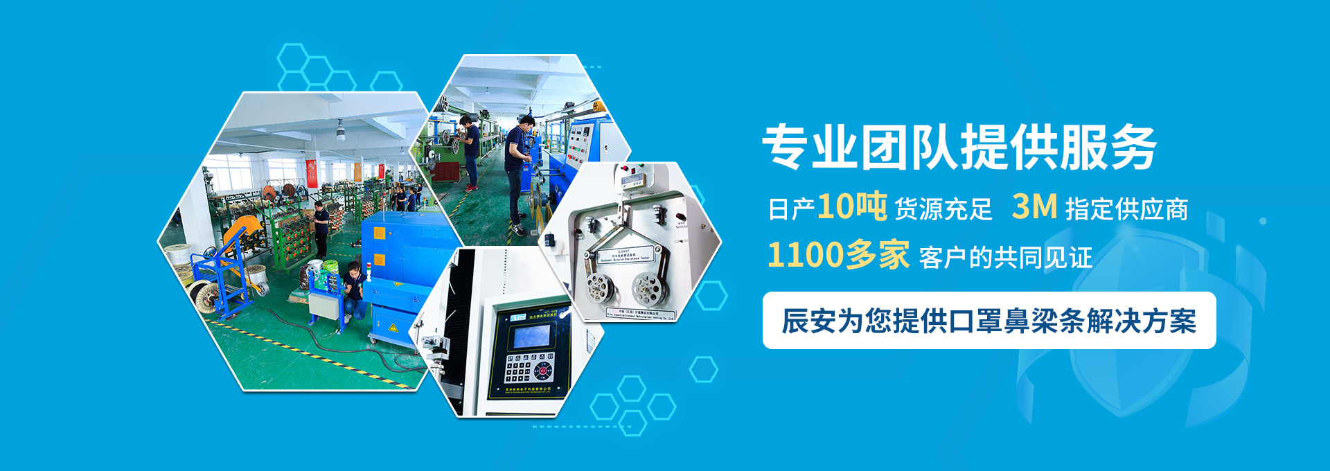 無錫辰安新材料是一家集研發、生產和銷售—體的現代化口罩物料鼻梁條、耳帶的企業;公司地址位于全國創新型城市——江蘇省無錫市。產品多樣:有單芯鼻梁條、雙芯鼻梁條、全塑鼻梁條、鋁條鼻梁條、KN95、KN94口罩用鼻梁條可定制;口罩耳繩材質:氨綸、···